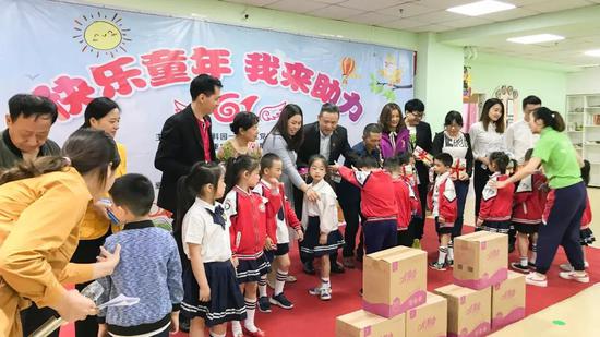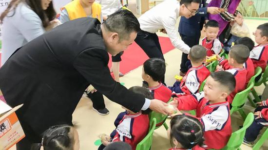 王定坤为孩子们购买了160本儿童书籍作为儿童节的礼物,为儿童的健康成为送上精神食粮,并带来蛋糕等点心,大家一起把礼物送到每个小朋友手里,每个小朋友都有礼貌的说着谢谢,活动现场洋溢着欢乐的气氛。